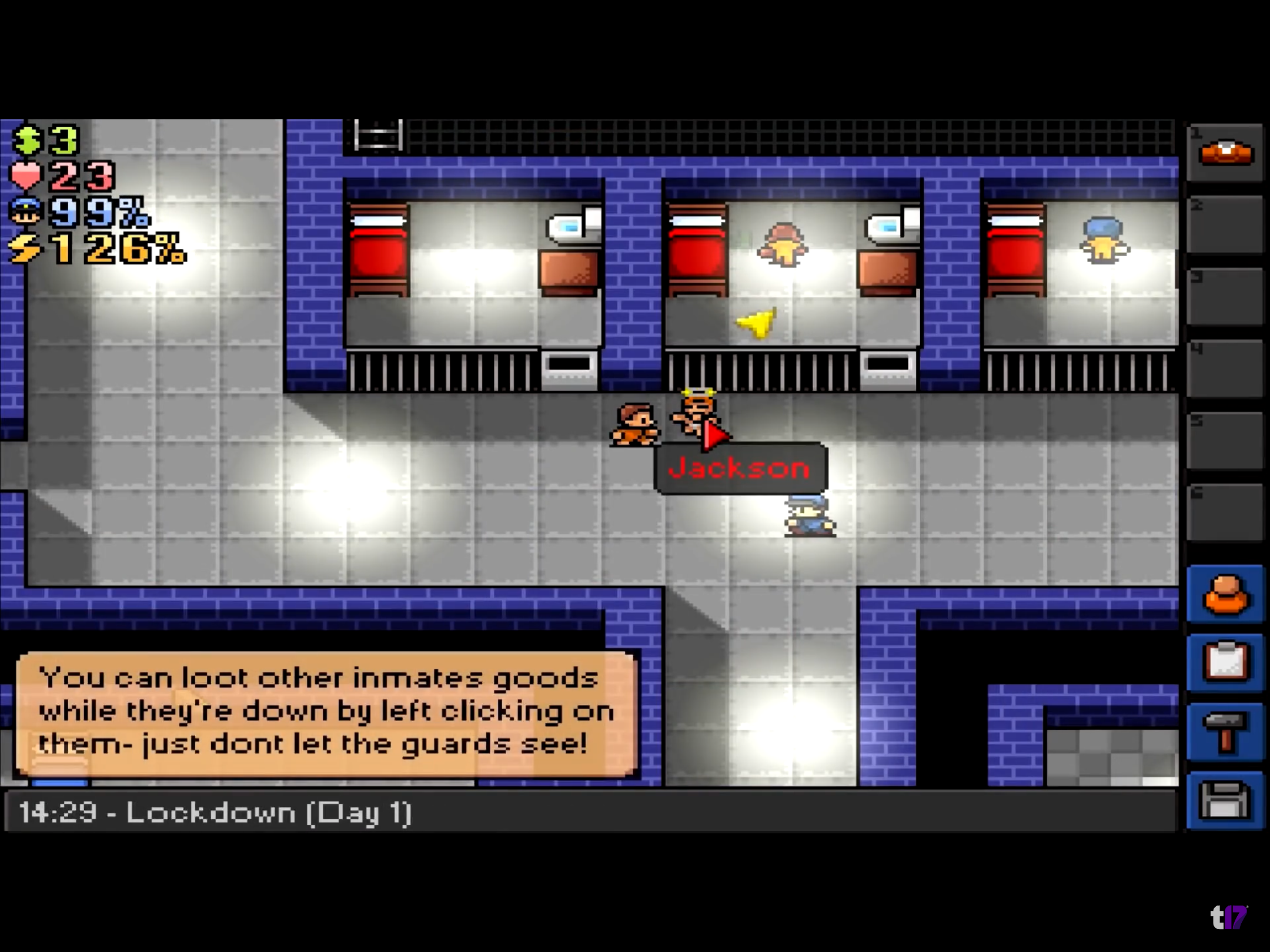 The Escapists — это уникальная игра, где можно экспериментировать ради дерзкого побега, изготавливая и объединяя множество предметов. Жизнь в тюрьме будет держать вас в тонусе — предстоит нарушить много строгих правил. А охранники будут пресекать любые попытки побега, поэтому вам придётся избегать подозрительного поведения, посещая переклички, работая в тюрьме и пряча украденные вещи.